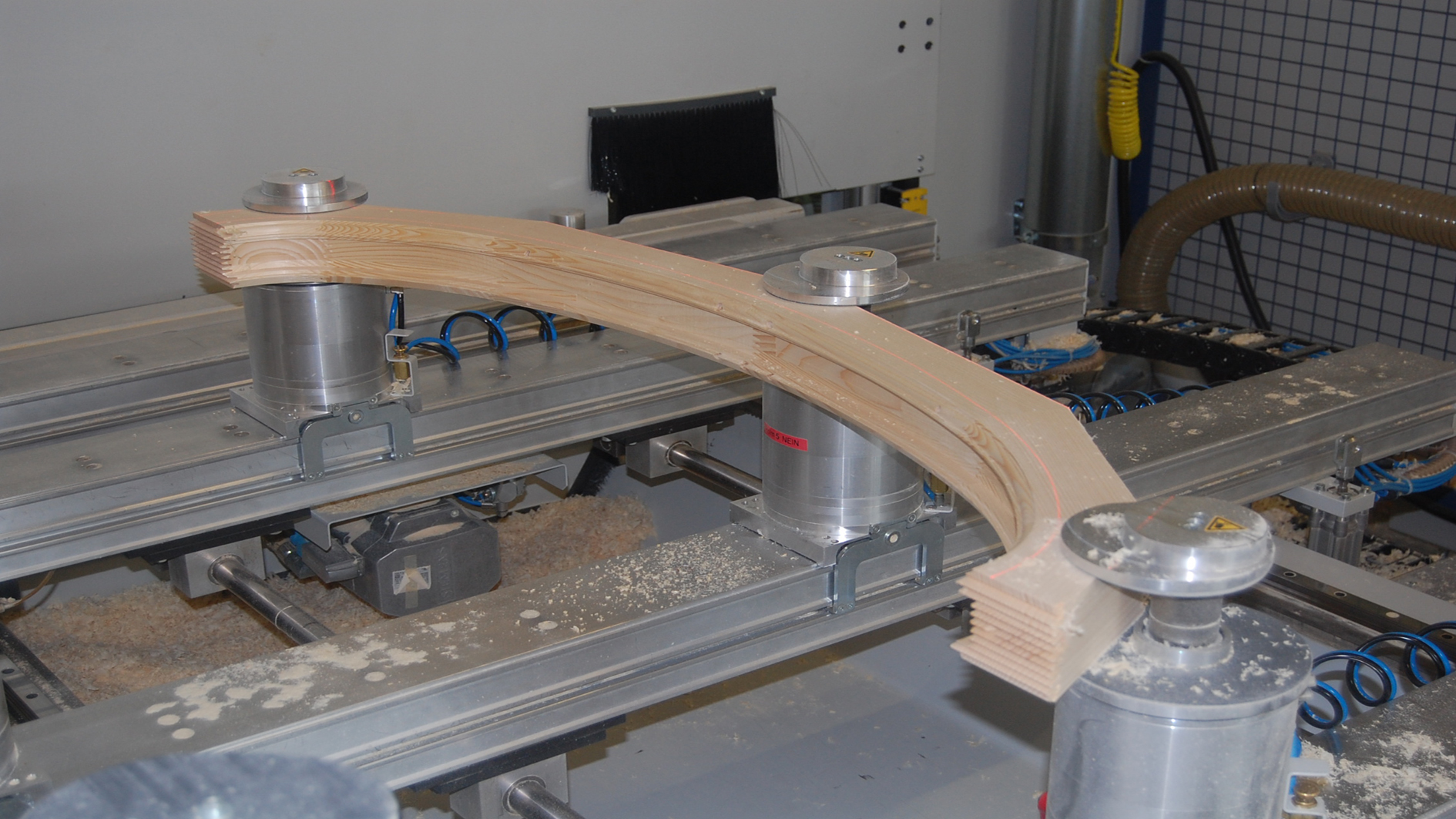 Auf ihrer Suche nach einer Technologie, die es erlaubt, sowohl Standard- als auch Sonderformen für die Nischenproduktion gleichermaßen effizient und wirtschaftlich zu produzieren, wurde die Schreinerei bei Weinig fündig. 2011 investierte sie in ein CNC-Center Conturex. Das Multitalent ist vom Grundkonzept her bereits auf hohe Flexibilität ausgerichtet. Das Projektteam der Hauri AG hatte jedoch eine besonders hohe Vorgabe: die Kombination von Stab- und Flächenbearbeitung in ein und derselben Anlage. Das System sollte es ermöglichen, jeden auch noch so ausgefallenen Kundenwunsch zu erfüllen. Mit der Conturex „F“ entschieden sich die Schweizer schließlich für die anspruchsvollste Ausbaustufe des modularen Fenstercenters. Die Conturex 124 F ist zuallererst ein vollautomatisches Durchlauftakt-Bearbeitungszentrum für stabförmige Teile in rahmenweiser Fertigung mit vollautomatischem Ablauf aus einem Teilepuffer von 100 Teilen.. Das „F“ weist allerdings auf den zusätzlichen, 3000 x 1500 Millimeter großen Traversentisch hin, auf dem sich Platten, Türblätter oder verleimte Fenster und Türen bearbeiten lassen. Entscheidend ist, dass beide Tische parallel in einer Pendelbewegung arbeiten, ohne dass umgerüstet werden muss. Das Highlight der Stabbearbeitung sind die patentierten Weinig PowerGrip-Zangentische. Sie halten die Teile, führen sie an den Werkzeugen vorbei und übergeben sie erst, wenn der nächste Tisch zugepackt hat. Die integrierte Flächenbearbeitung verfügt mit dem VarioGrip-System über eine ähnlich effiziente Technologie. Im Fall der Hauri AG, die auch Bogen- und Sonderteile produziert, werden die Teile pneumatisch oder mit Vakuum gespannt. Werkzeuge mit großen Hubhöhen gewährleisteten maximale Effizienz und Wirtschaftlichkeit auch im Bereich der Flächenbearbeitung. „Damit kann tief unter den Tisch gefahren werden und so das Werkzeug der Stabbearbeitung 1:1 auch für Rundbögen verwendet werden. Bei anderen Konstruktionen geht das nicht, da braucht man dann Werkzeug mit kürzeren Dornen“, weiß Geschäftsführer Markus Lochmann vom verantwortlichen IT-Partner m.p. network.