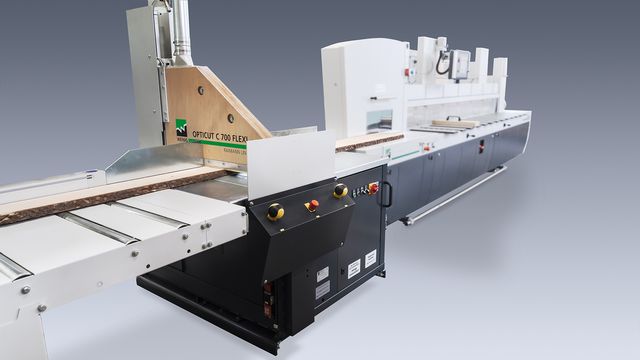Die Kappsäge FlexiCut ergänzt die SOLID RIP FX 210 zur modernen Zuschnittlinie.